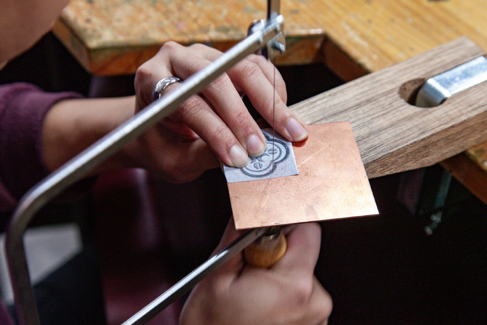 課程旨在培養學員與循序漸進引導技法的操作,熟練各項手工具操作與輔助創作構思。認識不同金屬材料特性、基本金工手工具與工作安全需知。金工飾品課程設計從戒指、項墜、耳環等物件,學習鋸切焊、扭轉、表面質感、拋光處理、曲面成型等技法,由淺入深學習基本首飾結構設計與製作,引導學員實驗與構思設計,並將設計落實運用在金屬上。