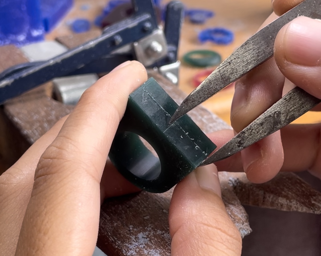 學習硬蠟的雕刻紋理、銼磨與拋光,完成造型戒指⼀件。 |