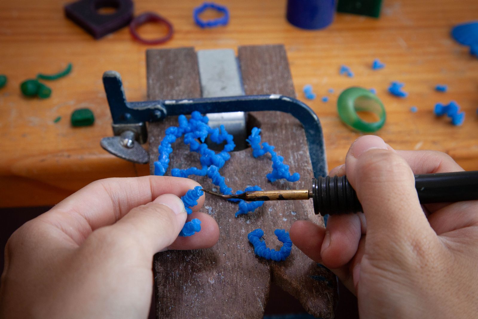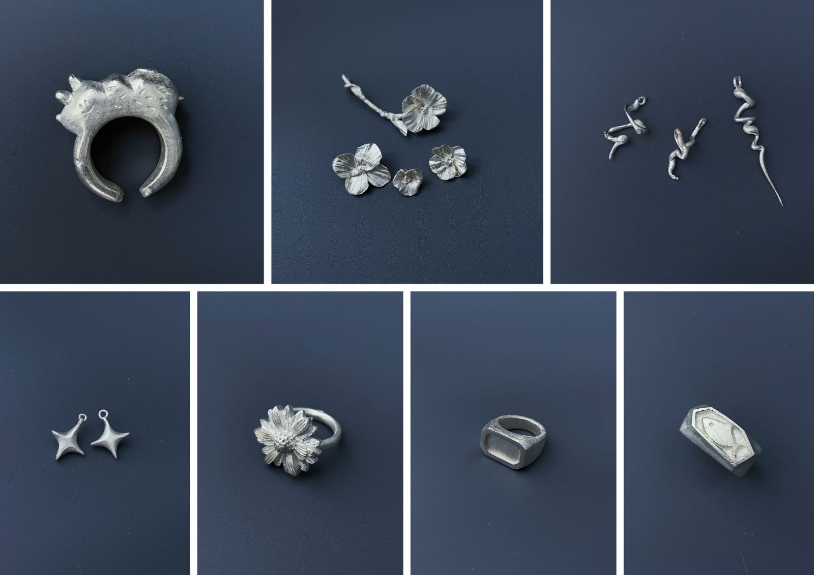 本課程介紹脫蠟鑄造(Lost-wax casting)的原理,蠟雕技法自由、具個人特色且試錯成本低,課程將使用硬蠟、手捏軟蠟、鑄造蠟等蠟材,透過認識蠟雕工具以及各種不同蠟材造形及質感的製作方法,使學生有居家操作的能力。完成之蠟件可選擇鑄成黃銅、銀或K金等金屬,並學習基礎金工技法如鋸切、銼修、表面處理,最終依個人設計製成飾品。 • 學習脫蠟鑄造(Lost-wax casting)的原理與基本工具介紹。 • 學習基本蠟雕技法、不同蠟材之應用方法,並培養材質實驗之創意思維。 • 指導學生首飾之結構、造型、金屬性質與製作技法等。